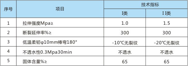 三層總厚約:1.5mm ,總用料量 : 2.7kg/m²適用于一般建筑工程防水。底層涂量 0.42kg/m² ;第二層涂量0.84kg/m² ;第三層涂量0.84kg/m²。